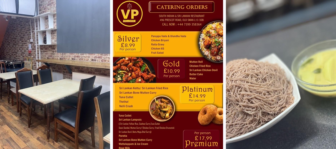 Welcome to VP Amman Sri Lankan & South Indian Restaurant, where authenticity meets flavor in the heart of Liverpool. Our menu offers a delightful array of Sri Lankan dishes, featuring specialties like parotta, biryani, and quick bites perfect for solo diners or groups. With a casual atmosphere and an inviting space effective for lunch and dinner, you'll find something to satisfy every palate. Enjoy the convenience of dining in and take advantage of our kid-friendly options. Join us at 496 Prescot Rd, and experience the vibrant tastes of Sri Lanka and South India!Diners rave about the parotta, a flaky flatbread that pairs perfectly with curries. Many guests also highlight the Sri Lankan Bone Mutton Curry as a standout dish, loved for its rich flavors and tender meat. The Wattalappam, a traditional Sri Lankan coconut pudding served with ice cream, resonates deeply with those who have a sweet tooth. Customers quickly note the warm customer service which makes dining here a pleasure. Additionally, the quick service options cater well to those on a tight lunch schedule, turning takeaway meals into a delight without sacrificing quality. The casual setting encourages patrons to relax and enjoy their meals at their own pace, which many appreciate.